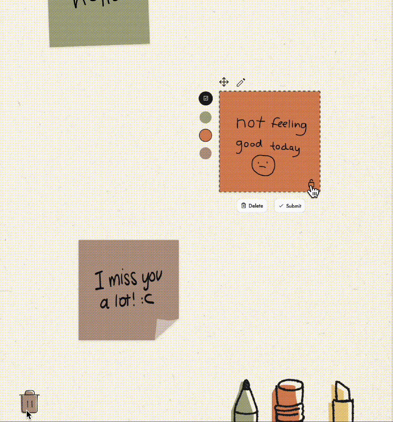 Users can handwrite notes directly on the board or on sticky notes. Handwriting notes were proven to foster openness and vulnerability between individuals.